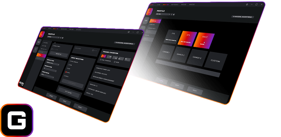 Além disso, experimente a conveniência do G-MENU, um software exclusivo da AOC que unifica a configuração do seu dispositivo em uma única plataforma.