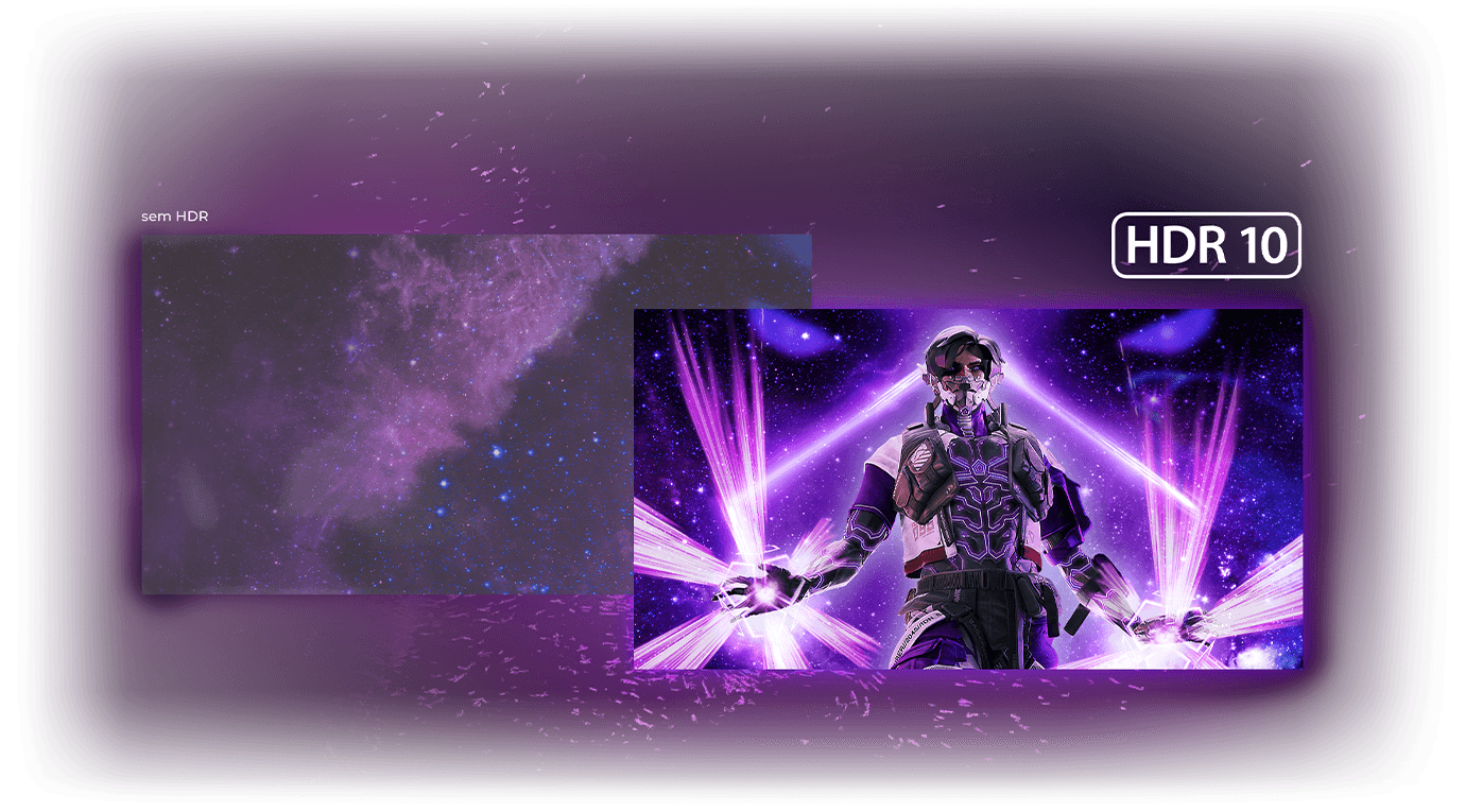 O HDR veio para aprimorar ainda mais a qualidade da imagem, melhorando a sincronização da sua GPU ou console com o monitor. Isso cria uma experiência de jogo mais realista, imersiva e suave. Você se sentirá como se estivesse entrando no jogo, quadro a quadro.
