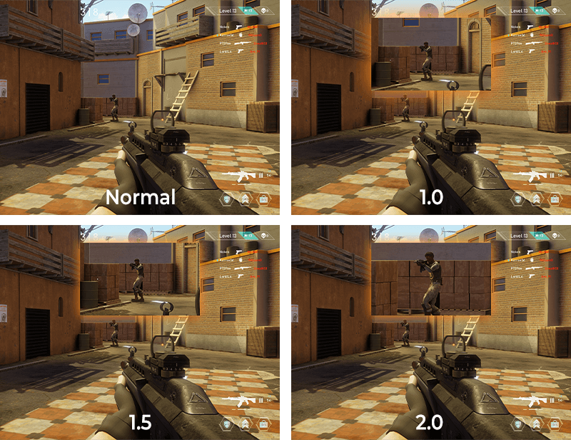 Elimine os inimigos antes mesmo que percebam sua presença. O Sniper Scope oferece zoom em múltiplos níveis para precisão absoluta, transformando qualquer arma em um rifle de longo alcance. A tela adaptável garante operação fluida, colocando você no controle total da partida.