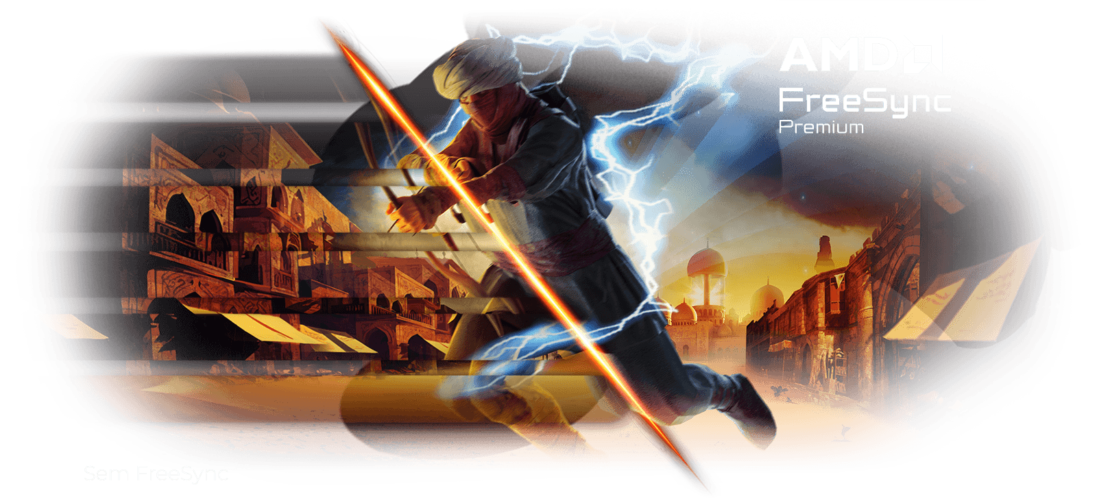 Jogue sem cortes ou distorções. A tecnologia AMD FreeSync Premium sincroniza a taxa de atualização da tela com a placa de vídeo, oferecendo imagens fluidas mesmo em variações bruscas de FPS.