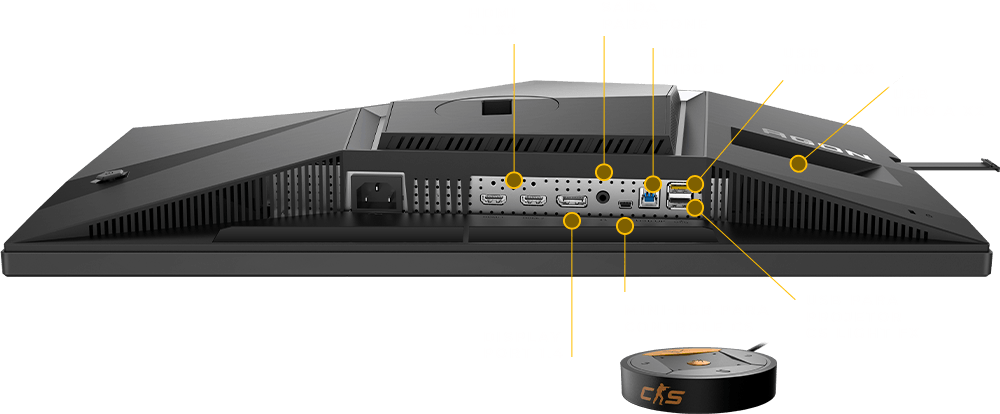 Com entradas HDMI 2.1, DisplayPort 1.4, USB Tipo A (x2), USB Tipo B, saída para fones de ouvido e Mini USB para troca rápida com o controle exclusivo, este monitor foi feito para facilitar a organização e dar agilidade ao seu espaço de jogo. Tudo conectado, tudo pronto para a próxima partida.