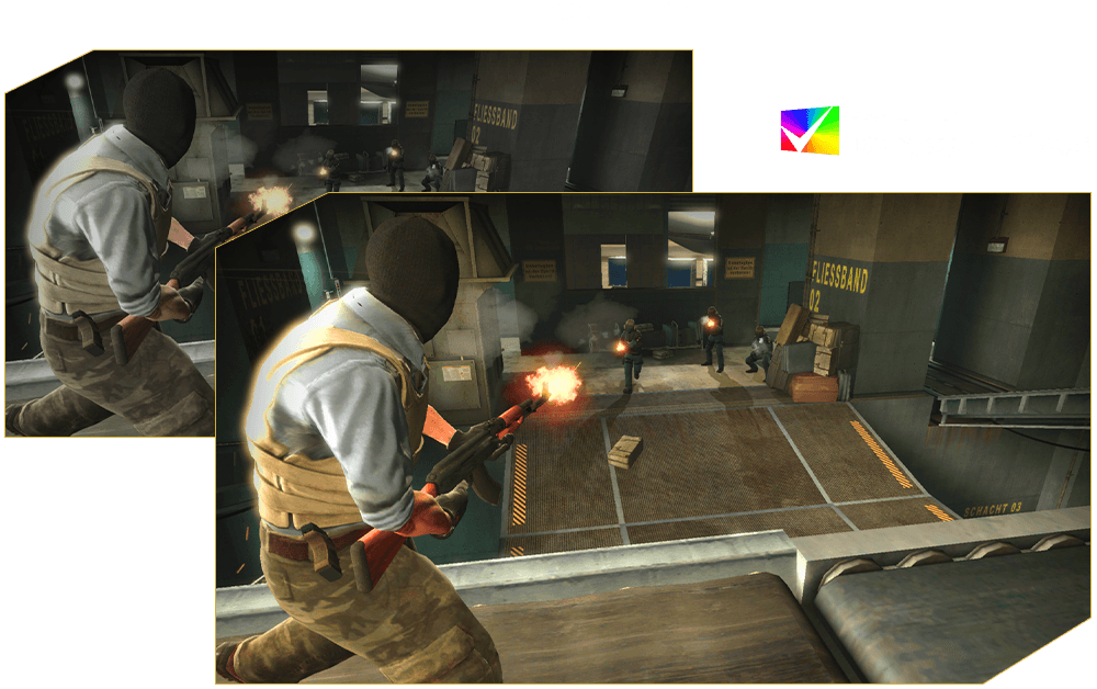 Com DisplayHDR 400, este monitor entrega contraste mais intenso, brilho aprimorado e detalhes mais visíveis em áreas claras e escuras. O resultado é uma imagem mais realista e imersiva, ideal para destacar cada sombra, reflexo e explosão durante as partidas de CS2.