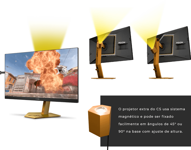 O efeito iluminação CS2 sincroniza os LEDs do monitor e o projetor CS com o status da bomba no jogo, reagindo em tempo real durante o acionamento, a contagem regressiva ou a desativação da bomba. A cada segundo crítico, a luz intensifica a tensão e torna a experiência ainda intensa e envolvente.