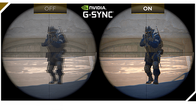 A NVIDIA G-Sync proporciona jogos sem cortes e ação envolvente com suporte VRR (taxa de atualização variável), sincronizando a ação do jogo ao eliminar a possibilidade de rasgos na tela.