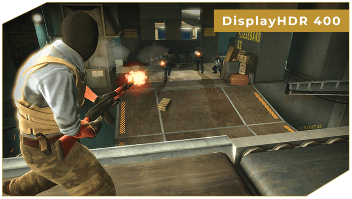 Com DisplayHDR 400, este monitor entrega contraste mais intenso, brilho aprimorado e detalhes mais visíveis em áreas claras e escuras. O resultado é uma imagem mais realista e imersiva, ideal para destacar cada sombra, reflexo e explosão durante as partidas de CS2.