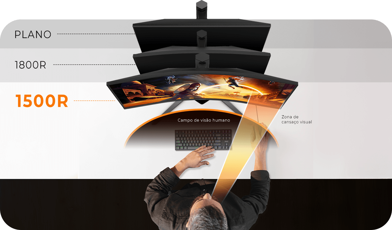 Imersão expandida com uma tela ultrawide de 34”. E com curvatura 1500R, a tela envolve sua visão periférica e oferece uma sensação mais ampla de profundidade, ideal para jogos que pedem atenção total ao ambiente.
