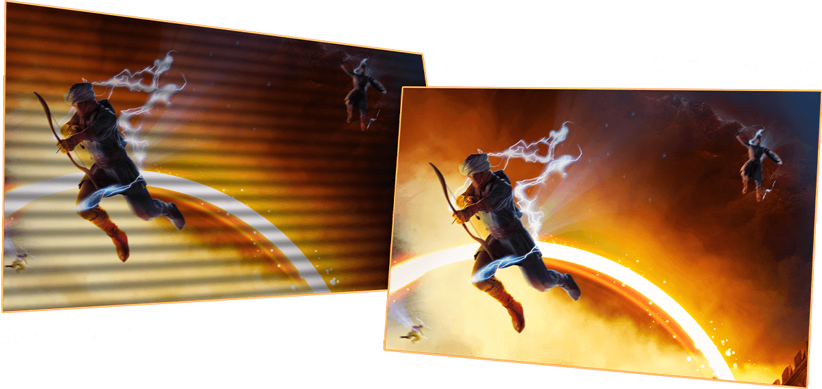 Visual mais estável o tempo todo. A tecnologia Flicker-free evita a cintilação invisível da tela, proporcionando mais conforto e menos distração em longas sessões de jogos.