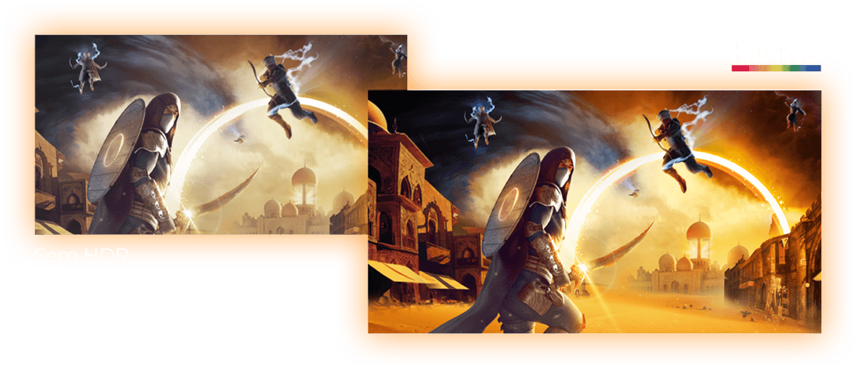 Imagens mais vibrantes, com brilho equilibrado e mais realismo. O HDR10 melhora a exibição de tons claros e escuros, realçando detalhes importantes em todo tipo de cena.
