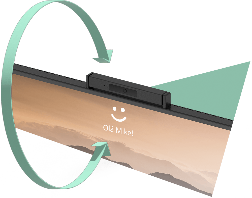 ou no escritório, impressione seus clientes e colegas com a praticidade desse monitor.Este monitor traz uma webcam giratória FHD de 5MP, que se esconde quando não está em uso, além de possuir microfone integrado na câmera e sensores avançados para o reconhecimento facial do Windows Hello™, permitindo que você se conecte