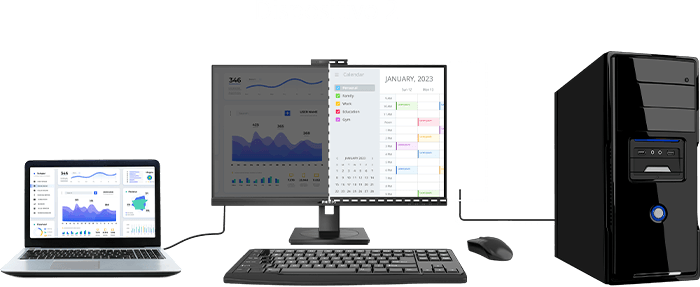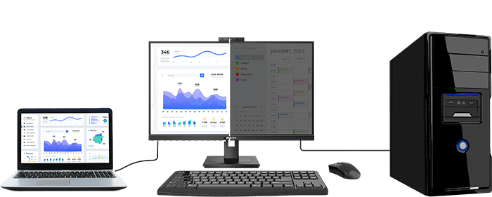 Com o switch KVM integrado MultiClient, controle dois PCs com uma única configuração de monitor-teclado-mouse. Um botão conveniente permite alternar rapidamente entre as fontes, ideal para setups que exigem dual PC ou compartilhamento de um monitor grande. O display Philips MultiView permite conexão e visualização duplas para multitarefas complexas.