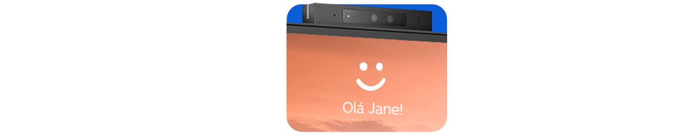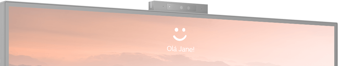 O monitor possui uma webcam de 5 MP com sensores avançados para reconhecimento facial Windows Hello™, permitindo login em menos de 2 segundos. A webcam é acompanhada por dois alto-falantes integrados de 5W, proporcionando áudio claro e de alta qualidade para videochamadas. Um interruptor físico da câmera oferece privacidade extra quando não está em uso.